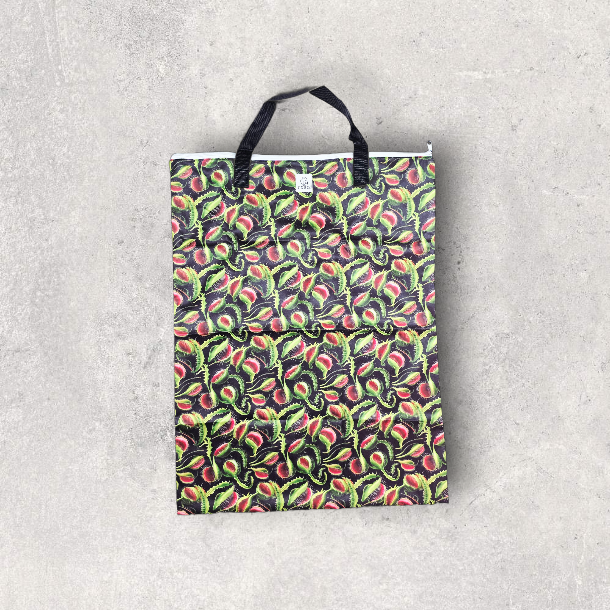 Made with durable, waterproof PUL, it contains moisture, odors, and leaks effortlessly. The single zippered top allows quick, convenient access, while the sturdy hanging handle makes it easy to attach to a door knob, towel hook, wrap around laundry bins, or anywhere that’s convenient for you.